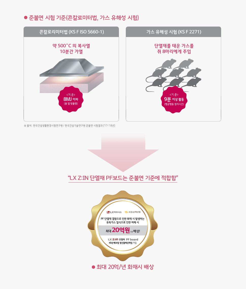 - 준불연 재료 기준 적합 - 내화 15분 성적서 획득(50T,2018년 4월 기준)